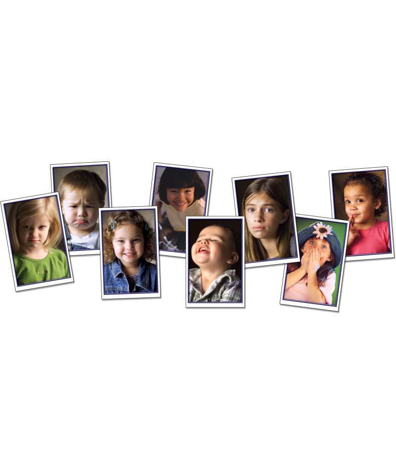 The Emotions: English Language Learner set includes 22 cards (8 1/2" x 5 1/2" each) including photographs of different emotions, plus a resource guide in English and Spanish.
