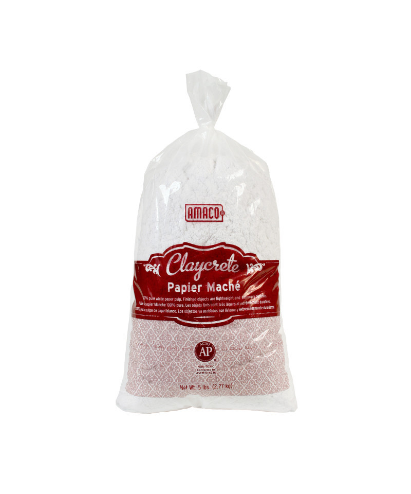 An exceptionally white papier mache that's easy to prepare and model. Ideal for use with WireForm® products. Pure white and dries white. It's easy to prepare, easy to model, very economical, and exceptionally white when dried at room temperature. Finished projects are very lightweight. Claycrete® is AP Non-Toxic, comes in powder form, and mixes with water to form a paste. Shake the closed bag first to thoroughly blend the ingredients before using. When in paste form, it is modeled or applied over an armature. Claycrete® starts setting up in 30 minutes, then detailed modeling can be done. Additions will stick to the form without any problem, because it will cling to any clean surface, but will not stick to the hands. One pound of Claycrete® will make 97.5 cubic inches or 18 bags will make 1 cubic foot of solid material.