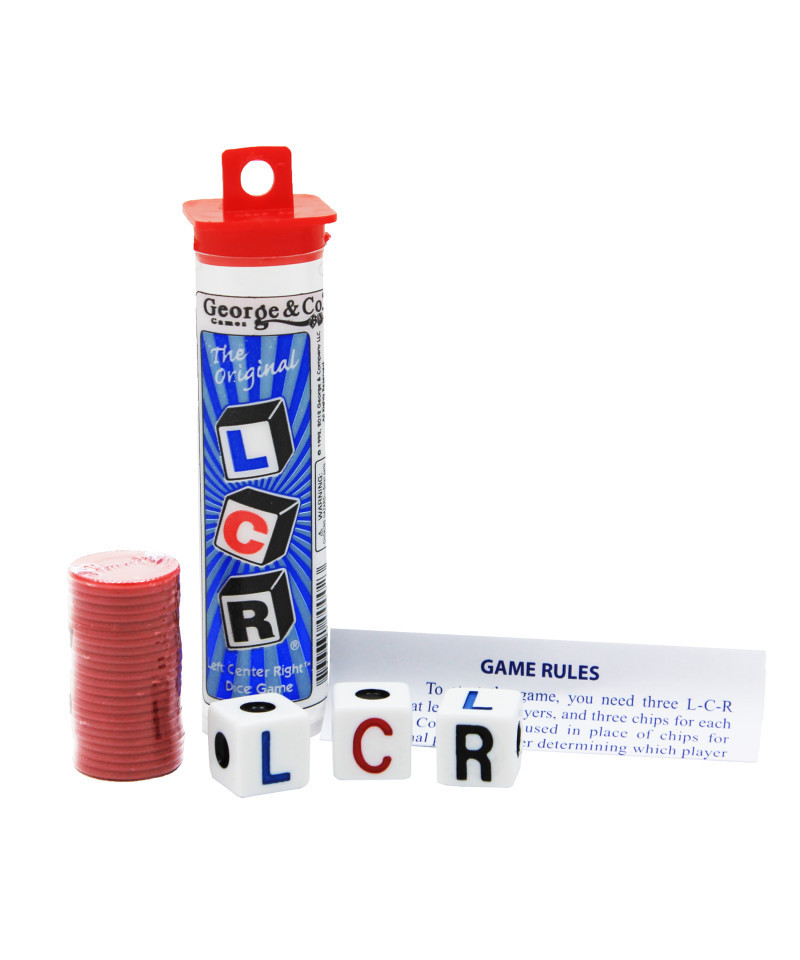 Left, Center or Right - Don't lose your chips! The exciting game that everyone's getting hooked on. Simple to play and fast-paced. Play L C R with chips or whatever makes it fun for you. L C R is a game for 3 or more players ages 5 to 105!