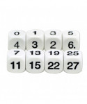 Koplow Games Math Numbers Dice Set is a fun, hands-on way for students to learn basic math skills. Children learn more effectively when it is reinforced through play. Perfect for individual play, in small groups or as a classroom making these dice a great educational resource. Dice measure 16mm (5/8"). Each set includes 8 dice, one die each of (0-5), (5-10), (1-6), (7-12), (13-18), (19-24), (25-30), and (1-3 twice).