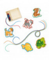 - 5 double-sided, wooden animals with color-coordinated laces included