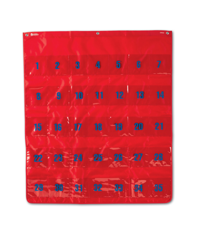 Holds up to 35 student calculators in 3.75" x 4" clear numbered pockets. Tough nylon chart has reinforced grommets for hanging. Calculators sold separately. Also great for storing cell phones!
