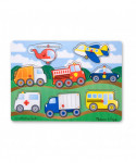 Go, go, go in your choice of vehicle with this colorful 8-piece wooden puzzle! The bright colors will catch your child's interest, and the pictures under the pieces and easy-grasp pegs will help to solve the puzzle. A great way to practice hand-eye coordination, fine motor skills, memory skills and more. Product measures 8.75" x 11.75" x 0.75".