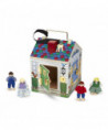 Ding Dong! Fun is at the door of this soundly-built wooden doorbell house. Four electronic doorbell sounds, four unique locks with matching keys, and four pose-able play people are included with this charming cottage! The keys are attached to the house so they won't get lost, and the sturdy handle allows this exciting house party to go wherever children go! Requires 2-AAA batteries, not included. Measures 9" x 6.8" x 6.8".