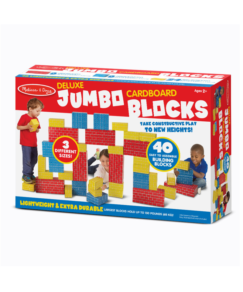 Young construction workers and architects will spend hours with these lightweight yet durable cardboard building blocks. This 40-piece set features three sizes of "bricks" for constructive imaginative play. Made of premium, extra-thick cardboard for strength, they are easy to assemble and feature a wipe-clean surface. The red blocks hold up to 150 pounds!
