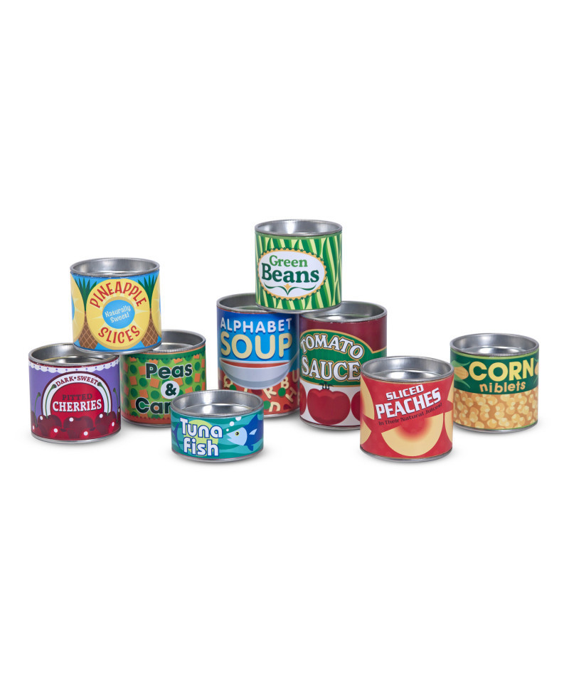 Stock a pretend kitchen with this collection of lidded cardboard play-food cans and you'll have all the ingredients for colorful, imaginative play. Open and close, fill and stack, sort and match--this set has a pretend-play flavor for every taste!