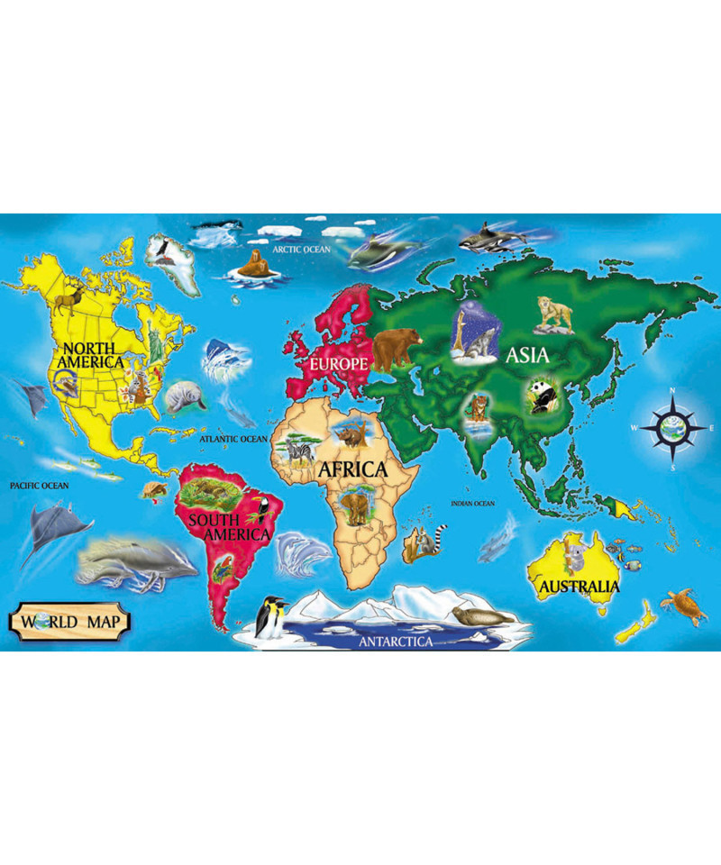 Explore the continents of the world and some of their animal inhabitants. 2' x 3' when assembled, the 33 extra-thick pieces feature an Easy-Clean surface to keep them looking like new. It's fun to learn world geography while assembling this detailed map puzzle.