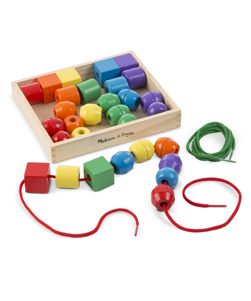 Thirty wooden beads in six vibrant colors and five distinct shapes combine with two extra-long laces for many activities. Stringing the easily grasped beads promotes hand-eye coordination, fine motor, cognitive and visual perception skills.