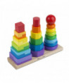 • 25 colorful wooden pieces to match and stack on three rods
