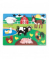 Explore the farm and meet the animals who live there with this easy-grasp peg puzzle. The wooden board is decorated with a charming farmyard scene and the pictures under the puzzle pieces make it simple and lots of fun to place the barn and animals into shaped wells in the sturdy wooden puzzle board. Your child will want to solve this puzzle again and again!