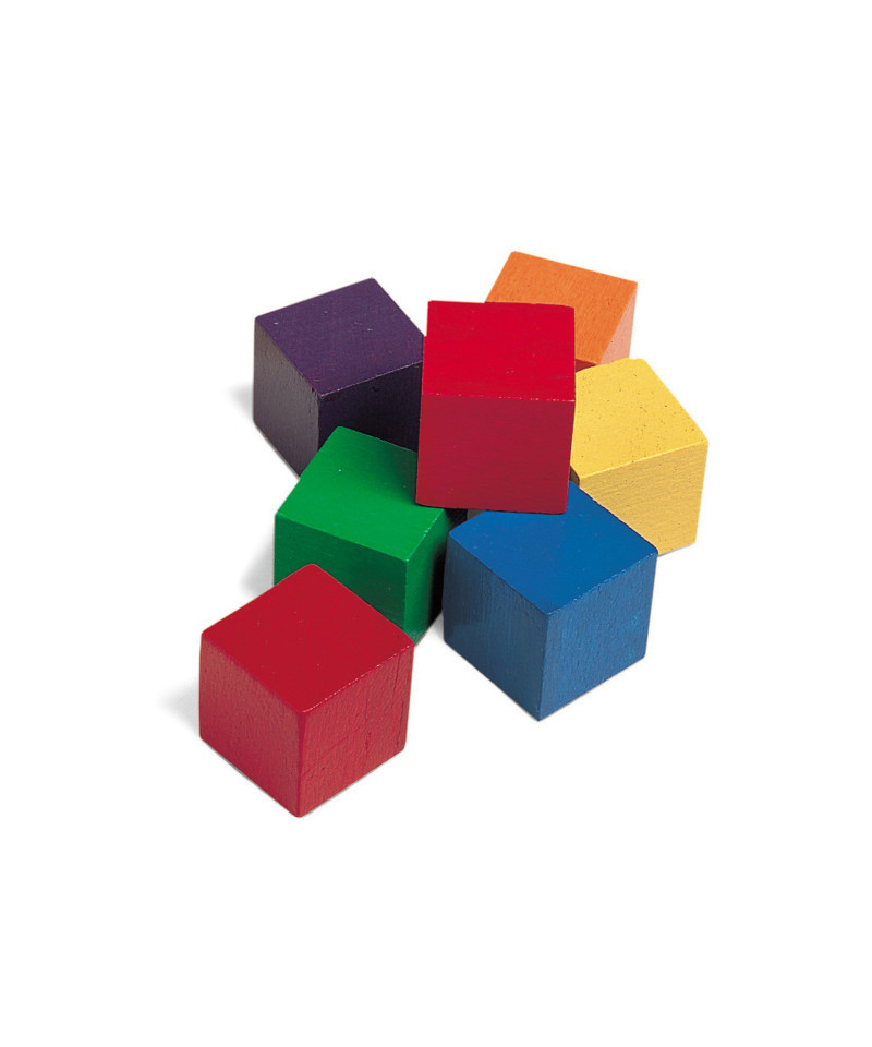 - 1" hardwood cubes come in six colors
