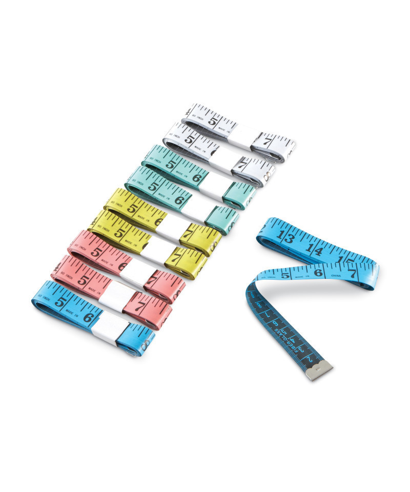 Each 60" plastic tape in this set has inches on one side and centimeter/millimeter scale on the other.