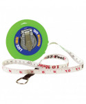 Fiberglass measuring tape is marked in cm and mm on one side and inches on reverse. Rolls into sturdy case. Tape measures 10 M/33'.