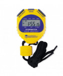 Easy-to-read display in 0.01 second increments. Features include 12- and 24-hour time, calendar/date display, alarm with hour chime/snooze feature, split-time functions and neck cord. Waterproof.