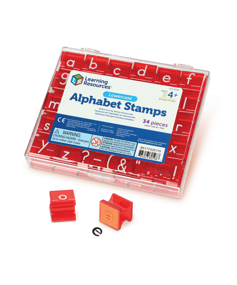 Kids love stamps and you'll love that they're learning. A great hands-on way to teach the alphabet, proper letter formation, as well as patterning and counting. Lowercase Alphabet Stamps contains 26 lowercase letters and eight punctuation stamps made of durable plastic and rubber. Easy-to-hold stamps store in a clear, sectioned plastic case.