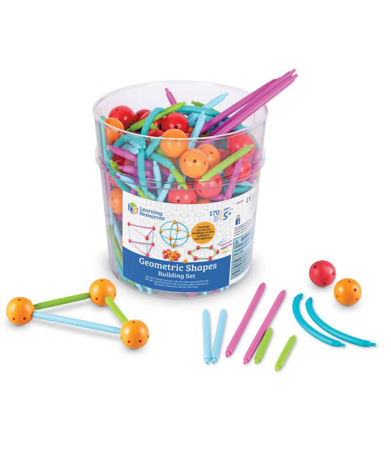 Create endless opportunities for students to build and explore shapes! Combine sticks in 3 sizes, along with curves for making circles and cylinders, with 2 different types of connectors to build 2-D shapes. Then, combine them to make new 2-D shapes, and even 3-D shapes! Child-friendly set features durable sticks, curves, and connectors. Includes 90 sticks in 3 sizes (2.25", 3.5", 5.25"), 32 curves, and 48 connectors (approximately 1" in diameter). Age 5+/Grade K+.