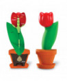 Demonstrate the parts of a flower in plant science lessons with this durable foam tulip model. One half of cross-section is labeled with part names (stamen, petal, pistil, sepal, stem, leaf and roots); other half is labeled with letters for assessment activities. For more detailed study, Activity Guide features discussion and labeled drawing of additional flower parts, including filament, anthers, stigma, style and ovary. Foam model wipes clean and measures approximately 6"H.