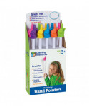 Colorful, hands-on pointers are easy to see against whiteboards and other light backgrounds. Draws student attention and interest. Provides positive behavioral intervention. Shows up sharply against light-colored surfaces, but works equally as well on pocket charts, word walls and more. Features white handles and assorted hand colors: 2 each of yellow, pink, blue, lime green, orange, purple. Measures 15".