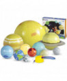 Demonstrate rotation, revolution, and orbit in 3 dimensions with this durable, washable solar system set. Teach the position, order, size, and shape of the planets and sun. Also great for creating an out-of-this-world playroom or bedroom. Each colorful planet (and sun) inflates easily. Loops included for easy hanging. This unique solar system set turns any room into an intergalactic experience. Includes: 8 planets with hanging hooks, Pluto, Sun, Earth's Moon, convenient foot pump, activity guide with fun planet facts, and a repair kit. Sun measures 23" in diameter, Jupiter measures 14" in diameter, Saturn measures 11.5" in diameter and includes attached rings, Neptune measures 9" in diameter, Uranus measures 9" in diameter, Venus measures 7.5" in diameter, Earth measures 7.5" in diameter, Mars measures 6" in diameter, Mercury measures 6" in diameter, Pluto measures 5" in diameter, and Earth's moon measures 5" in diameter. Grades K+.