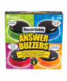 Come up with your own fun buzzer sounds! Record silly messages, words, sounds, or music-the possibilities are endless! Record up to 7 seconds per buzzer. Just tap, record, tap, and listen! Includes recordable buzzers in 4 different colors and Activity Guide. Each buzzer measures 3.5'' in diameter and requires 2 AAA batteries, not included.