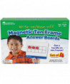 Teach the foundational concept of 10 like the most effective Asian math programs do -- with ten frames! Reinforces counting, 1-to-1 correspondence, base 10, place value, number patterns, operations and more. Offers hands-on engagement as students place magnetic counters on boards, then raise boards to show their answers. Features double-sided magnetic, write & wipe boards offering 10-square frame on one side and double 10 on reverse. Includes 4 boards, 100 double-sided foam magnet counters (red and yellow), and Activity Guide. Boards measure 7''L x 6.25''H. Grades K+.