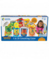 Colorful, familiar fruits and veggies introduce early math and are great for imaginative play too! Teach counting, number recognition and sorting. Cans are labeled with numeral, word and picture for extra support. Reinforce everyday vocabulary and fine motor skills. Includes 55 plastic fruits and vegetables, 10 cardboard cans with lids, and activity guide. Each can measures 4.25"H x 3"D.