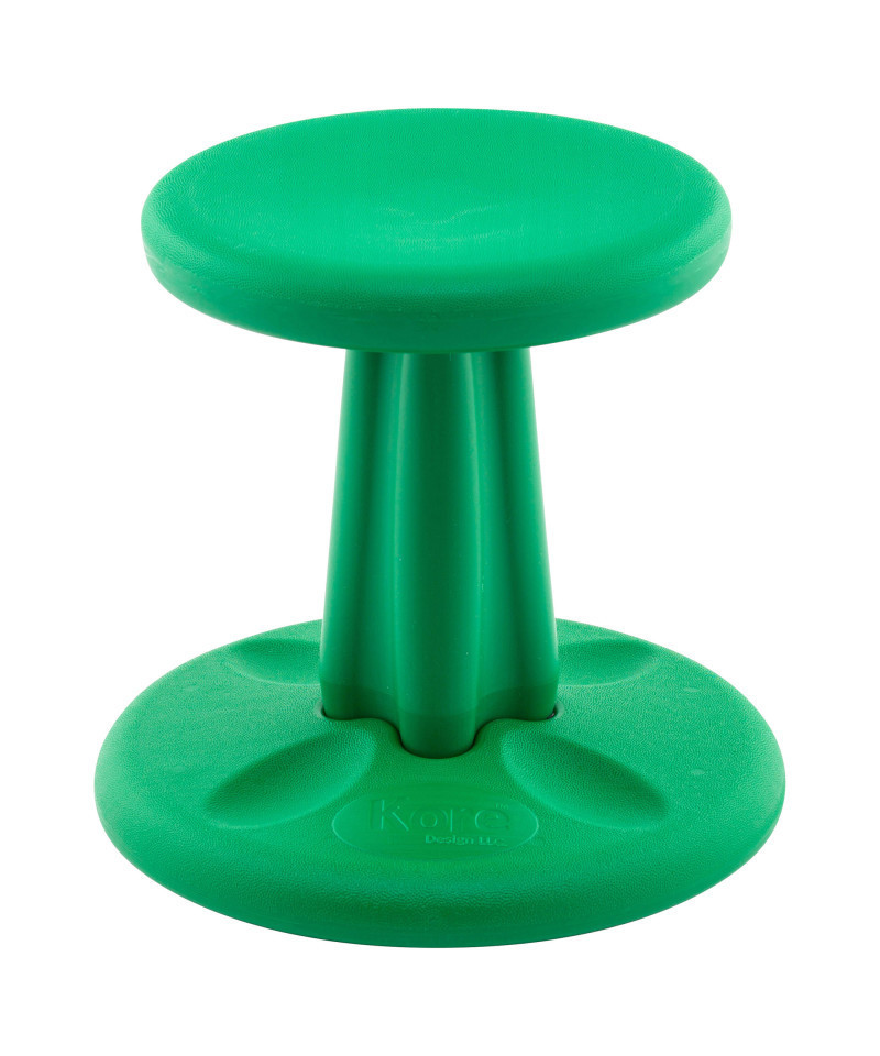 The innovative Kore Design® Kids Pre-School Wobble Chair with its gently-rounded bottom encourages active sitting and allows one's knees, hips and back to find comfortable and ever-changing positions. Continuous movement increases Secondary Focus – concentrating on the task instead of fixating on sitting still. Active sitting can also help improve posture and prevent pain or stiffness that may result from prolonged sitting. Seat height 12"; suggested for ages 4-5; grades PK-K; child height of 40"-43".