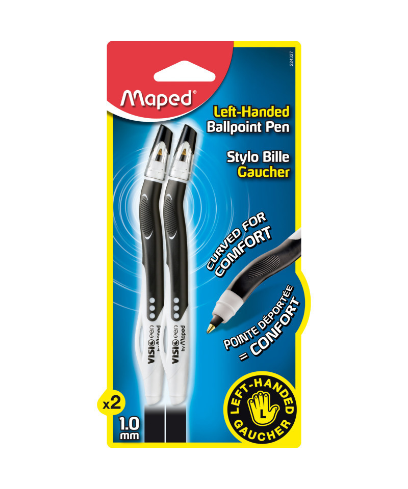 - Maped® Visio Left-Handed Pen. 2 pack includes black and blue.