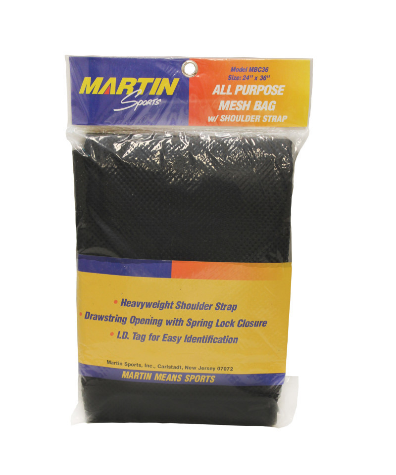 Small mesh opening-suitable for screen printing with a heavy drawstring, plastic lock closure, heavy carrying strap and I.D. tag for easy identification. Can be used as equipment, laundry, or ball bag.