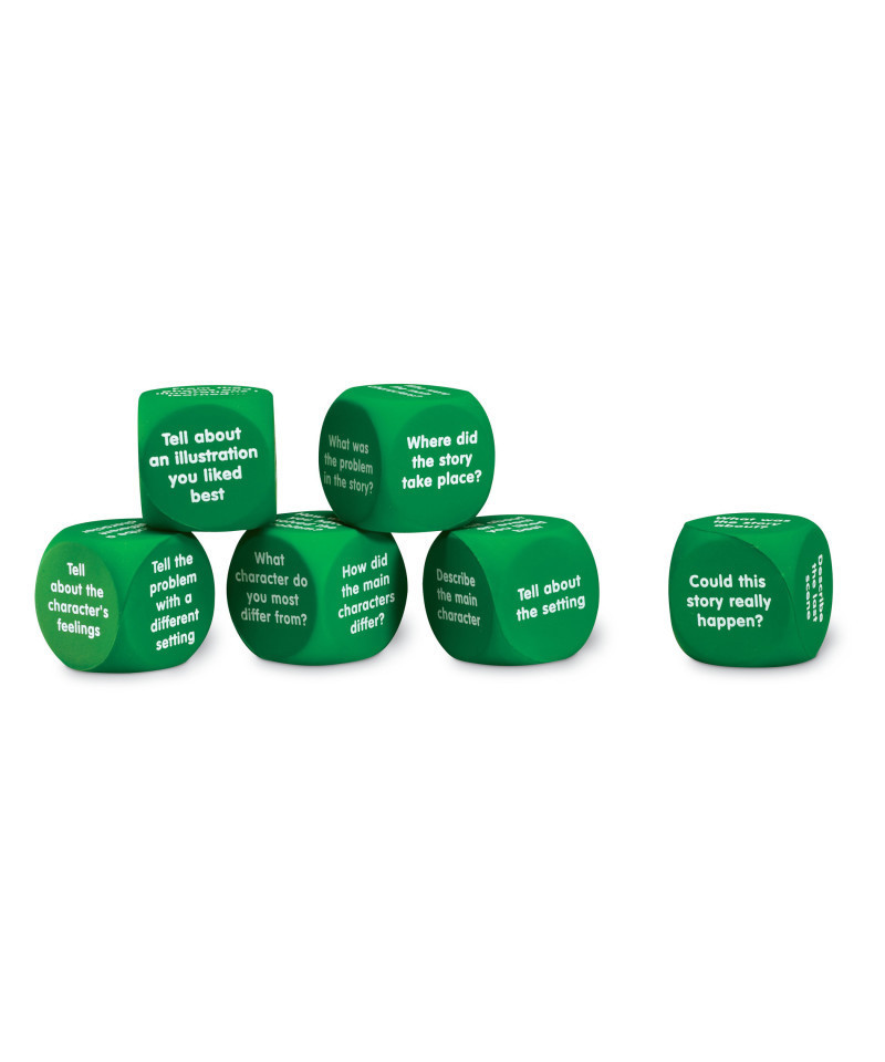 Boost reading and listening comprehension with these 6 foam cubes that target after-reading skills while encouraging creativity. With a unique story-retelling suggestion on each side, cubes feature 36 different activities. Use color-coded cubes alone or with Reading Comprehension Cubes (LER 7022) in centers, small groups or individually for quiet play. Activity Guide included. Cubes measure 1 5/8".