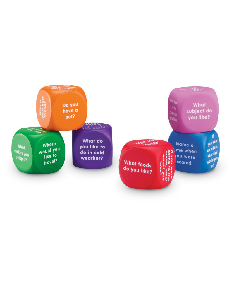 Spark discussions on the first day and beyond. Features 36 engaging questions about student experiences and perspectives, including: What is the most important thing you own? What do you want to be when you are older? What was the strangest dream you have had? Builds oral language, social and listening skills. Makes a great addition to character development activities. Provides direction for brainstorming before writing. Supports fluency and oral language development in ELLs and students with speech impairments. Includes Activity Guide. Each in this set of 6 soft foam cubes measures 1.625".
