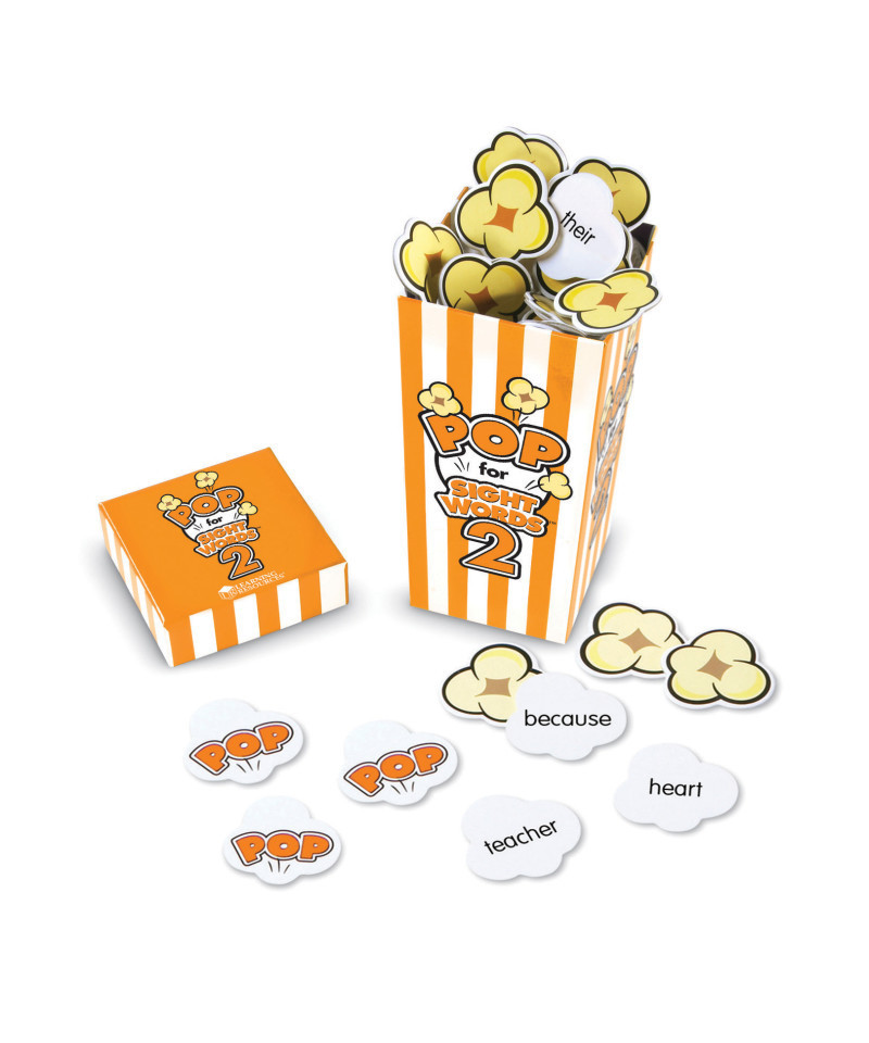 Gobble up another 100 sight words! Follow-up set to the original POP for Sight Words™ (LER 8430) includes the next 92 high-frequency sight words—100 cards in total. Features popcorn container with guide printed on the outside.