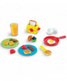 - Tune fine motor and social skills as children work together to crack open the egg, flip pancakes, fill the muffin with fruit, and get breakfast on the table