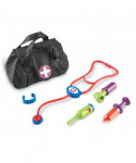 Safe practice for the youngest wanna-be docs! Chunky tools made from durable, soft plastic are perfect for encouraging early imaginative play. Students can work through anxieties and apprehensions for upcoming doctors' visits by acting out what happens during the appointment. Refines fine motor skills needed for everyday living without even realizing they are developing muscles and movement. As students treat their patients, they are getting a lesson in receptive and expressive language. Listen to what hurts, form and ask questions to pull more information out of your patients so you can give them the care they need. Includes stethoscope, syringe, bandage, ear scope, thermometer, and vinyl bag measuring 6.75"W x 5"H.
