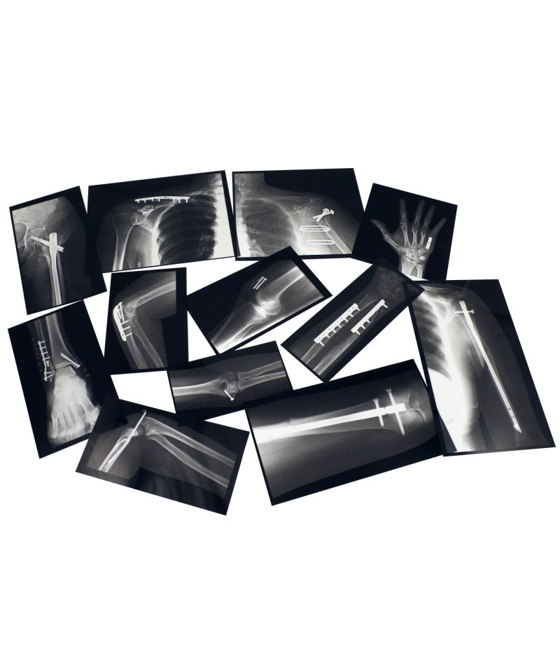 Authentic x-ray images show the hardware (plates, screws, nails, pins and wires) used to fix a broken bone. Fourteen additional images of the fractures, printed on cardstock, correspond to x-rays of the repairs. Use with a light source, such as Roylco's Educational Light Cube, to view details like a doctor would! Great for young learners as well as Secondary Education Science. Includes: 14 x-rays, 14 broken bone images on cardstock up to 7.5 x 11" (19 x 28) and guide. Age 5+ Made in USA