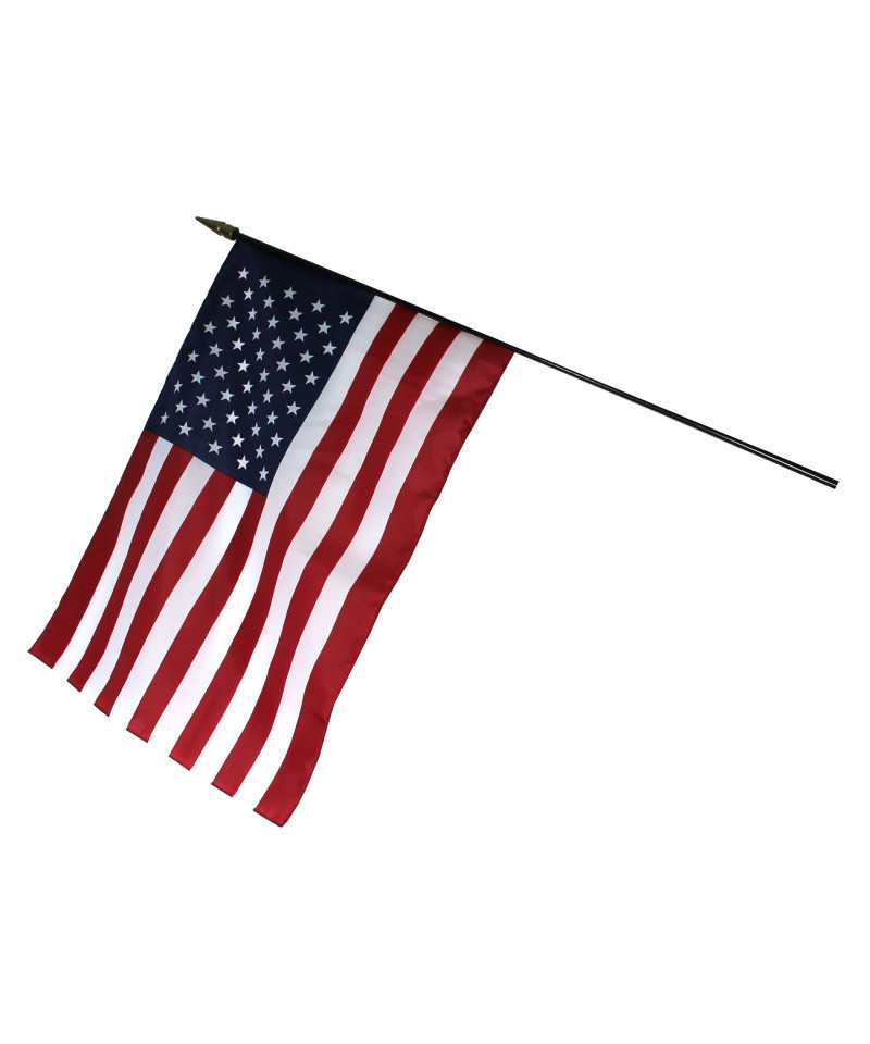 Empire brand U.S. Flags are a quality line of indoor flags specifically designed to use in classroom settings. These flags are an indispensable part of any classroom. Dyed in brilliant colors on silky rayon material. All hems are stitched and securely stapled to ebonized staffs with gilded spearheads. Flag measures 16" x 24", staff measures 3/8" x 36".