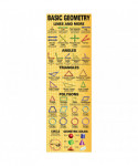 This giant, colorful poster displays and defines important basic geometry concepts, including types of lines, angles, triangles, polygons, and geometric solids. The teacher’s guide contains creative extension activities along with interesting background information. Poster measures 22" x 68".