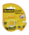 Scotch Permanent Double Sided Tape is coated with photo-safe, permanent adhesive on both sides. A no-mess alternative to glue for light duty attaching and mounting tasks, tape won't dry out or yellow. This tape comes on a 1 in. core on a dispenser, and measures 1/2 in. x 250 in. Made in USA with globally sourced materials.