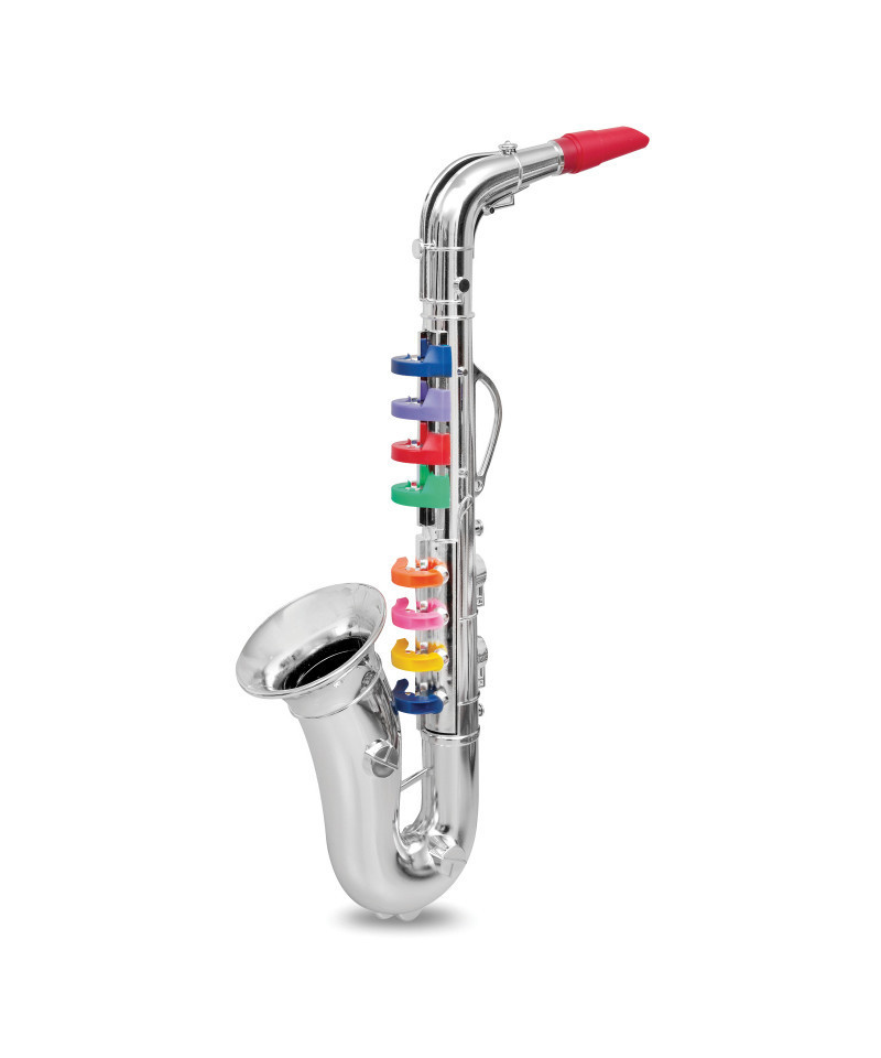 This Senior Saxophone offer 8 colored keys/notes and larger than the Junior Saxophone. A quality innovative toy for the young musician. Learn to play three songs / instructions included - Jingle Bells , Oh Susanna , Twinkle Twinkle Little Star. Recommended for children ages 3 years and up. Made in Italy.