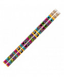 Musgrave® Pencils offer dark markings and is ideal to draw, write or sketch. Round pencil is made of wood for durability and features metal ferrule with smooth eraser. Round wooden, quality #2 core with metal ferrule and smooth eraser. All of our designer pencils are very colorful and have catchy phrases and/or graphics. Unique Art by in-house art director. Each pack includes 12 pencils.