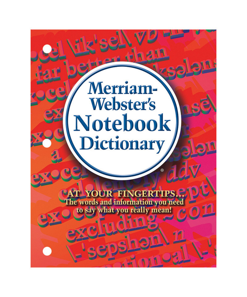 The Merriam-Webster's Notebook Dictionary is a quick-reference, word resource conveniently designed for 3-ring binders. Especially for students grades 5 and up. 40,000 entries for widely used words. Concise, easy-to-understand definitions and pronunciations. Brief punctuation guide, the Periodic Table, and Weights and Measures. Includes 96 pages. Measures 8.5" x 10.875". Paperback, 3-hole punched binding.