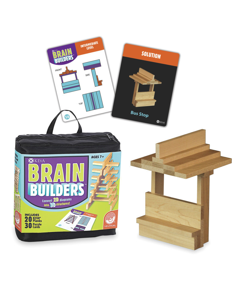 Approach KEVA from a whole new angle! Full-color cards include a 2D building challenge on one side and the solution on the other. Manipulate your KEVA planks to successfully duplicate the balance, proportion, composition and geometry featured on each card. Includes 20 KEVA planks, 30 double-sided cards and instructions in a zippered carrying case.