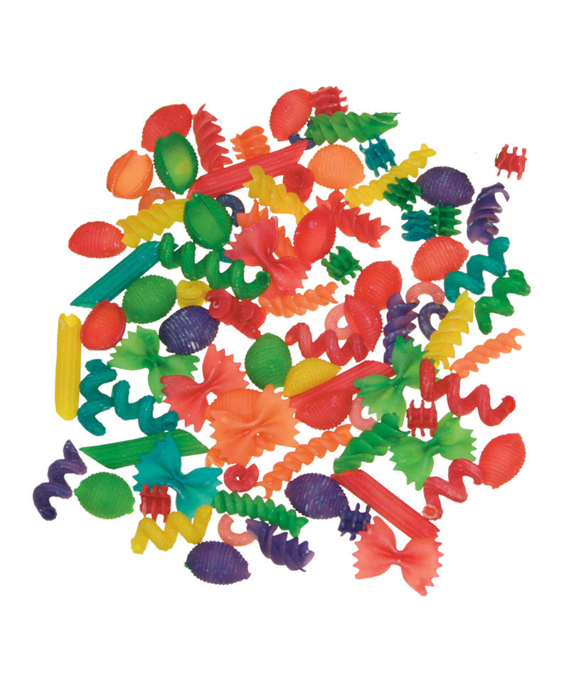 - COLORED NOODLES - Jumbo assortment of macaroni shapes and colors to add dimension to arts and crafts. String to make garlands or necklaces. 1lb pkg