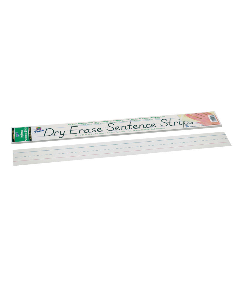 The dry erase surface makes these sentence strips convenient and reusable. Use them again and again in the classroom or at home. Ruled 1-1/2" with red baseline and 3/4" dotted midline on dry erase side. Dry erase surface on one side. Measures 3" x 24". Each pack contains 30 strips.