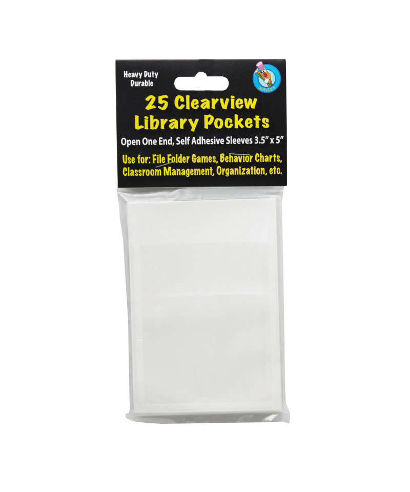 These pockets seal at end and remove easily from desk. Self-adhesive and heavy duty. Open pocket, slip in card, remove backing, position pocket and stick! Each pocket measures 3.5" tall by 5" wide. Each pack includes 25 pockets.