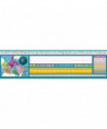 Canadian Intermediate desk plates include alphabet line, name plate, place value, 28 cm ruler, number line (-30 to 30), equivalent fractions, and a map of Canada. Measures 19" x 5". Each pack includes 36 desk plates. Note: this item features Traditional Cursive font.