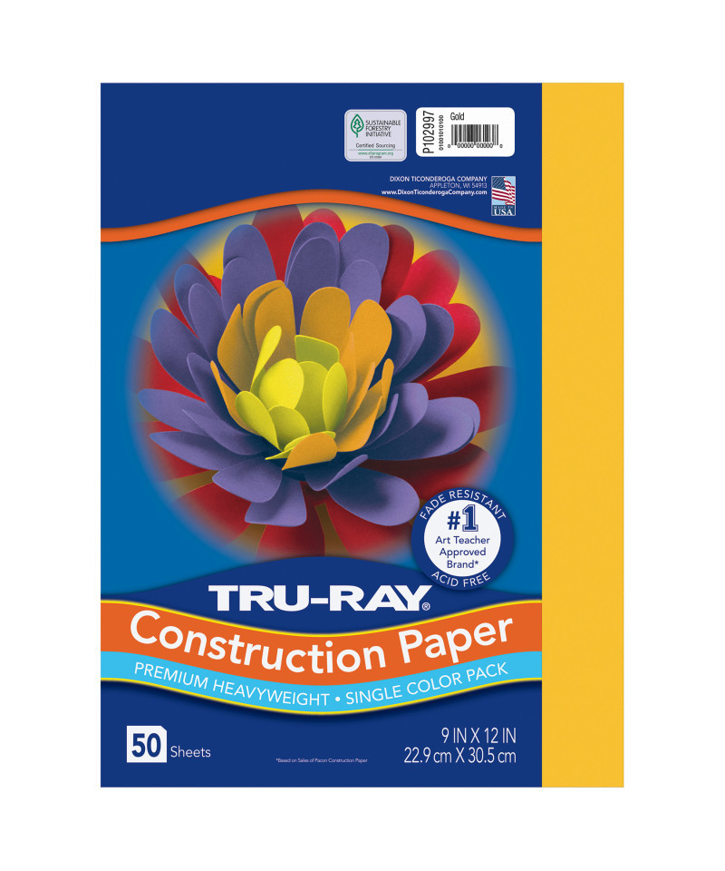 Tru-Ray® Construction Paper, Heavyweight, Gold, 9" x 12", 50 Sheets