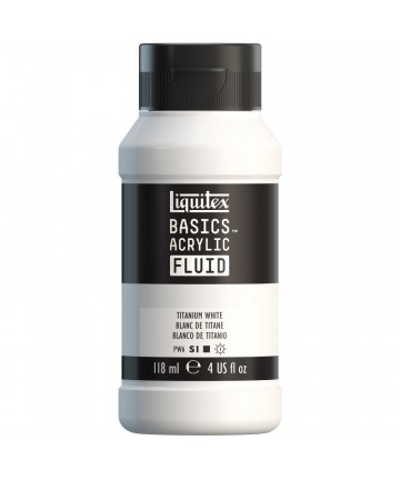 A brilliant white single pigment color, which offers the strongest, most opaque of all whites. Titanium white is an inorganic pigment introduced in... Add to cart Liquitex BASICS Acrylic Fluid, 118 mL Bottle, Titanium White $10.29