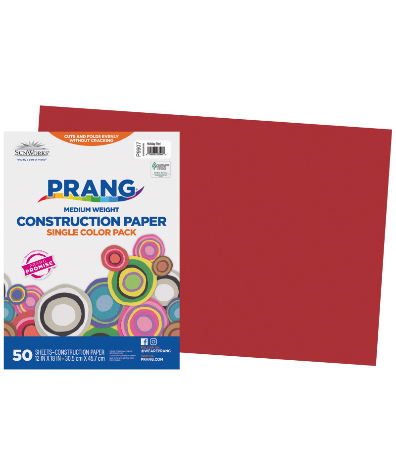 Prang® Medium Weight Groundwood Construction Paper provides the best value in school grade construction paper. It is the perfect solution for school projects and other arts and crafts. It has bright and consistent colors, is slightly textured and cuts and folds evenly without cracking. Recyclable. Measures 12" x 18". Each pack includes 50 sheets.