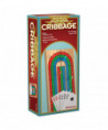 Players use card combinations to peg points along the wood cribbage board. This handsome wood version can be played by 2 or 3 players and folds to a handy take-anywhere size. For 2 to 3 players, ages 8 and up. Game includes wooden cribbage board with storage compartment, continuous 3 track, 1 deck playing cards, 9 pegs, and complete instructions.